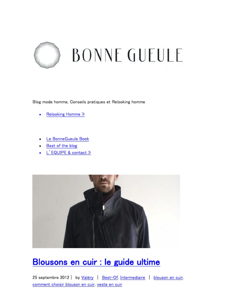 Conseils en mode masculine, et marque de vêtements pour homme la. L'aventure commence par le lancement d'un blog de mode masculine, peu nombreux en 2007. Bonnegueule.fr is a male fashion information website. Les auteurs du site bonnegueule.fr qui conseillent les hommes sur leur vestiaire, sortent un guide pratique, jeudi 10 octobre. Bonne gueule n'est absolument pas financé par les marques, ce qui donne de la valeur à sa parole.
